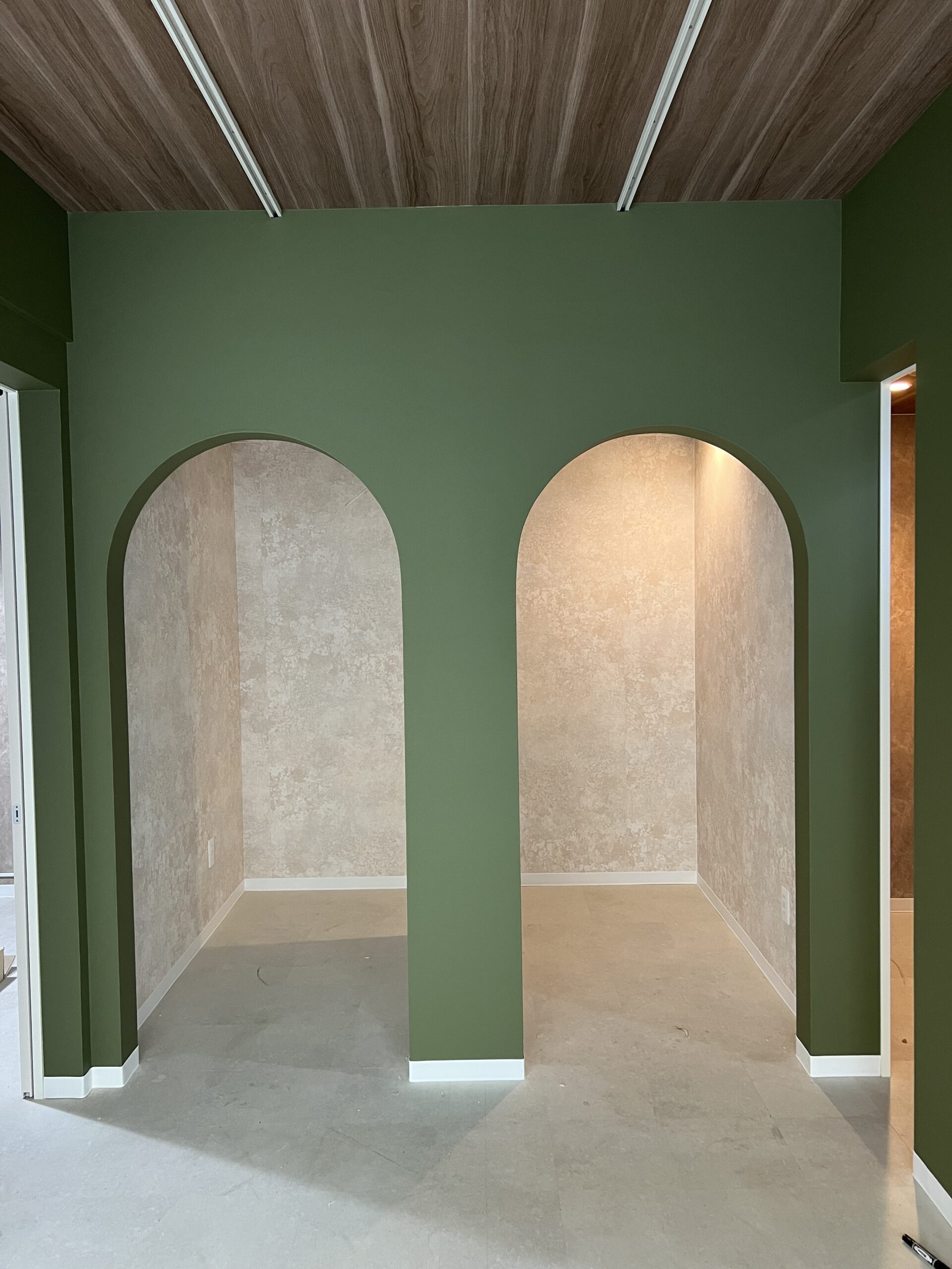 店舗 アーチ壁 修復 壁紙張り替え工事